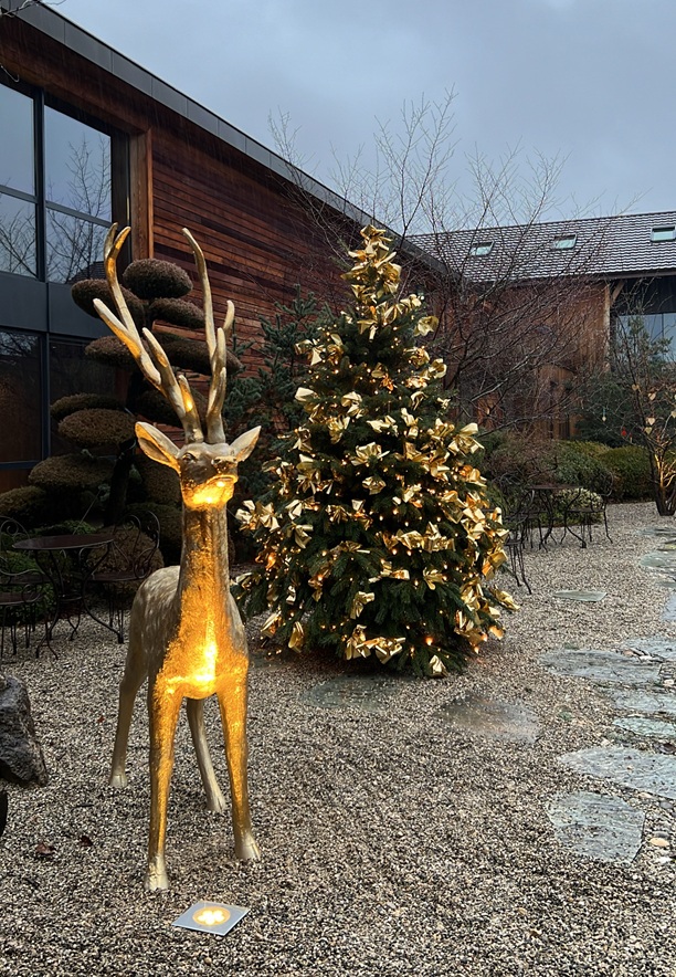 Majestueux Cerf doré en résine avec ses bois amovibles à installer seul ou avec nos Chevreuil 75cm  et ou Chevreuil 115cm