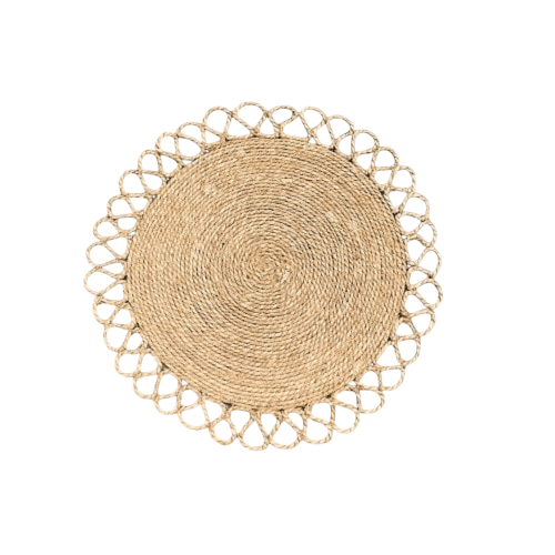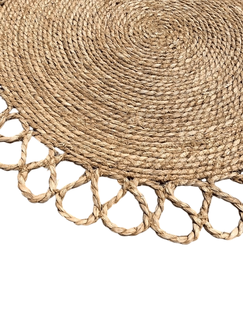 Un tapis rond en rafia