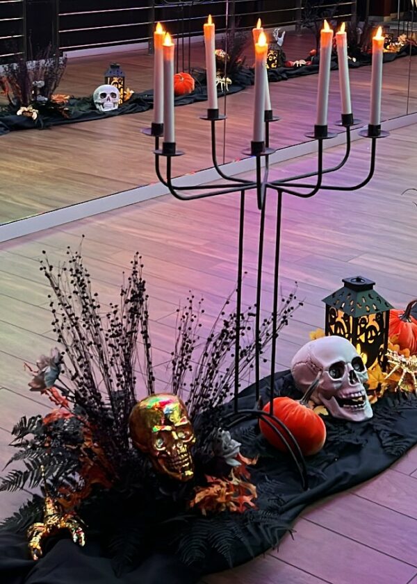 Pour compléter votre décoration de table nous vous conseillons également nos chandeliers bras de squelette doré et nos bras de mort vivant doré disponibles également en location .