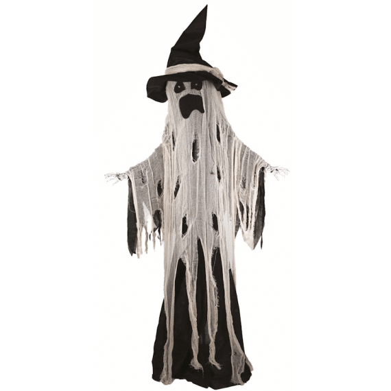 Faites régner la peur chez vos invités avec le Vieux Fantôme Grincheux, un automate géant de 2,10 m qui donnera vie à votre décoration d’Halloween.
