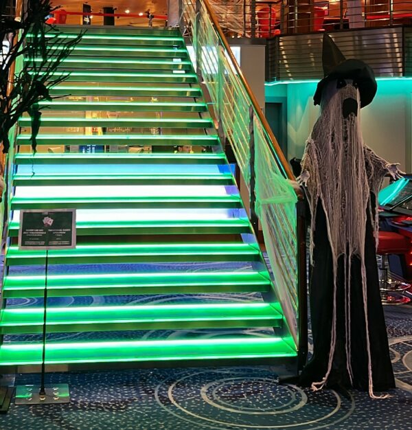 Animé, sonore et lumineux, ce spectre imposant transforme n’importe quel espace en scène effrayante.