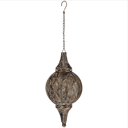 Une jolie lanterne en métal à suspendre, pour décorer votre salle et/ou vos extérieurs (jardin, cérémonie…) dans un style oriental ou Mille et unes nuits.